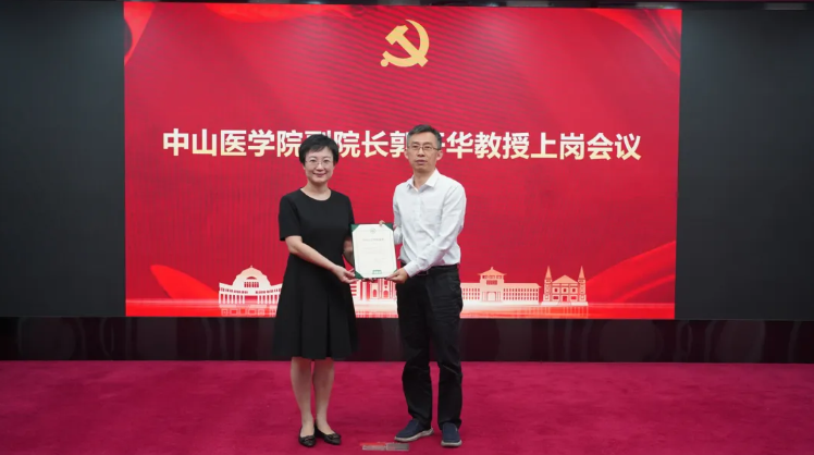 匡铭院长代表学院党政领导班子表态发言。他首先感谢了学校党委对学院发展的高度重视和关心支持,学院将坚决拥护学校的任命决定。其次,对郭开华副院长加入领导班子表示热烈祝贺和欢迎。最后,他表示,在学校党委的坚强领导下,学院班子成员将精诚团结、共同努力,传承中山医红色教育传统、服务粤港澳大湾区建设,真正做到为党育人、为国育才,推动学院高质量内涵式发展。