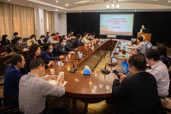 2022年3月2日下午,中山医学院召开专题会议学习贯彻学校党的建设工作会议精神。学院党政领导班子成员、党委委员、党支部书记、教师代表、民主党派和党外人士代表等30余人参加会议。会议由学院党委书记张琪主持。