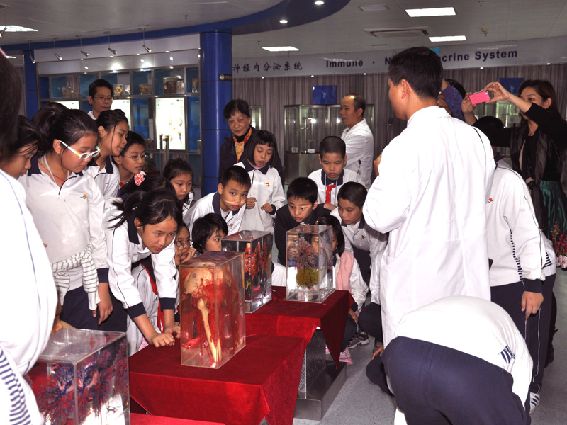2013年11月19日星期二下午,医学实验教学中心党支部依托医学标本馆,面向广州市小学生开展科普教育活动,来自中山二路小学五年级的45名小学生在老师和家长的带领下参观了医学标本馆。实验教学中心党支部的老师们分别向参观者介绍了馆内陈列的标本,并根据人体正常标本、寄生虫标本等生物标本特征,结合疾病预防常识向小学生宣传科普知识。