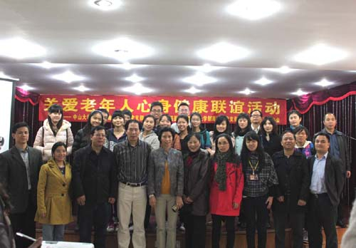 2012年12月21日上午,中山医学院医学实验教学中心党支部联合附属第一医院医技党支部、学院南校区长学制党支部,学院医心遗意志愿者协会,一行26人前往广州市老人院,开展“关爱老人身心健康,倡导无偿捐献遗体”活动。在冬至的寒风中,我们为老人家送去温馨的问候和真诚的祝福。