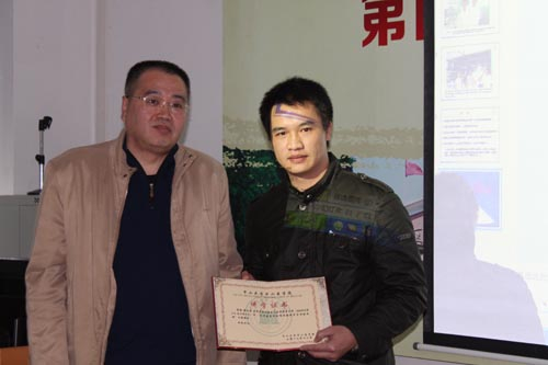 初国良主任正在给梁昌盛老师颁讲学证书