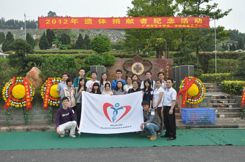 2012年4月1日上午,广州市红十字会在广州新塘华侨公墓,举行广州市遗体志愿捐献者追思纪念活动。该活动由广州市政府副秘书长、广州市红十字会副会长赵南先同志主持,广州市副市长、市红十字会会长贡儿珍女士出席活动并讲话,市卫生局局长兼党委书记、市红十字会常务副会长黄炯烈,广州市红十字会专职副会长欧阳炳惠,以及市民政局、公安局、司法局等政府职能部门的主要负责人,各区、县级市红十字会负责人,各登记接受站的代表,学生代表,遗体捐献者亲属等约400多人参加了活动。由永利yl23411中山医学院组织的志愿捐献遗体者的亲属,以及师生代表280人同时参加了追思活动。