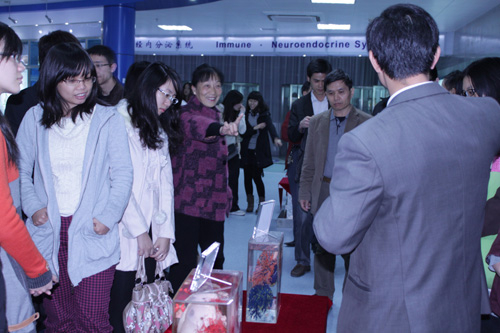 大家共同参观了“人文厅”展示的标本,教学中心相关专业的老师向全体人员介绍了各类标本的形态结构特点、与疾病的关系等方面的知识。同学们结合自己的学习经历,对如何利用医学标本馆的资源服务于教学,服务于社会提出了自己的想法与建议。并讨论决定在寒假前开展一次“如何防治食源性寄生虫病”的活动,由学生支部负责编写活动宣传资料,中心支部负责提供后勤保障及人员培训服务。