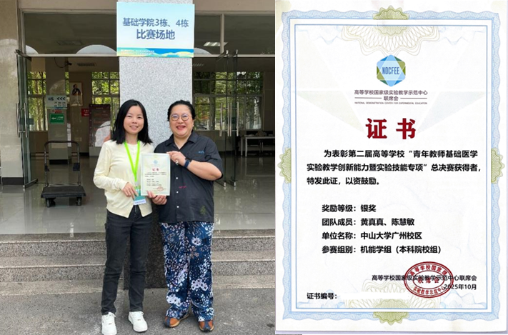 10月24日至26日,第二届高等学校“青年教师教学创新能力(基础医学实验技能专项)”总决赛于桂林医科大学圆满落幕。本届大赛由高等学校国家级实验教学示范中心联席会基础医学组、高等学校基础医学教师实践技能协同创新发展联盟共同主办,以“提升实验技能,创新医学教育”为核心理念,旨在通过高水平竞技平台,推动青年教师及实验技术人员专业能力的系统提升与教学创新能力的深层激发。全国73所高校的150支参赛队伍齐聚一堂,展开激烈角逐。我院生理教研室黄真真副教授与基础医学实验教学中心机能学实验室陈慧敏实验师组队参赛。