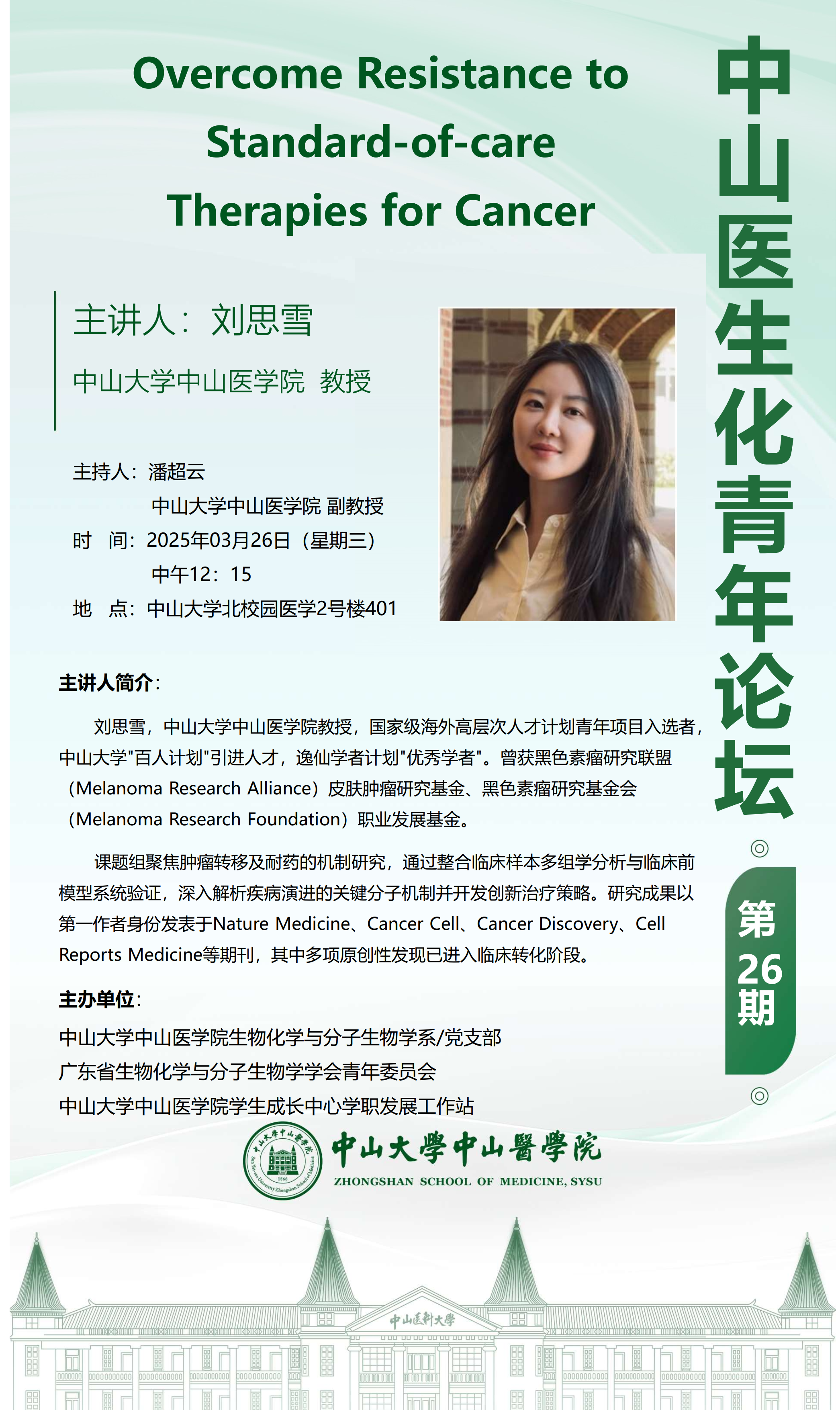 导航痕迹 首页 科学研究 学术讲座 中山医生化青年论坛第26期 科学研究 科研通知 学术讲座 科研平台 办理指引 中山医生化青年论坛第26期 Overcome Resistance to Standard-of-care Therapies for Cancer 发布人:张玉琦 发布日期:2025-03-18