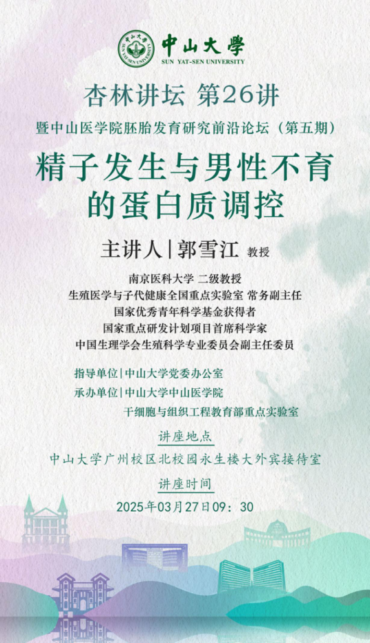 导航痕迹 首页 科学研究 学术讲座 中山医学院杏林讲坛第26讲:精子发生与男性不育的蛋白质调控 科学研究 科研通知 学术讲座 科研平台 办理指引 中山医学院杏林讲坛第26讲:精子发生与男性不育的蛋白质调控 精子发生与男性不育的蛋白质调控 发布人:张玉琦 发布日期:2025-03-21