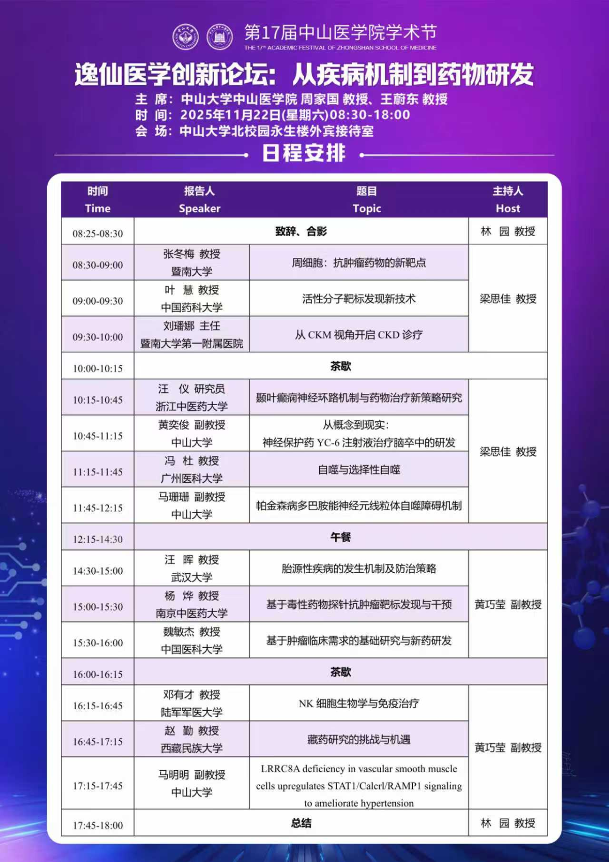 导航痕迹 首页 科学研究 学术讲座 逸仙医学创新论坛:从疾病机制到药物研发 科学研究 科研通知 学术讲座 科研平台 办理指引 逸仙医学创新论坛:从疾病机制到药物研发 发布人:张玉琦 发布日期:2025-11-20