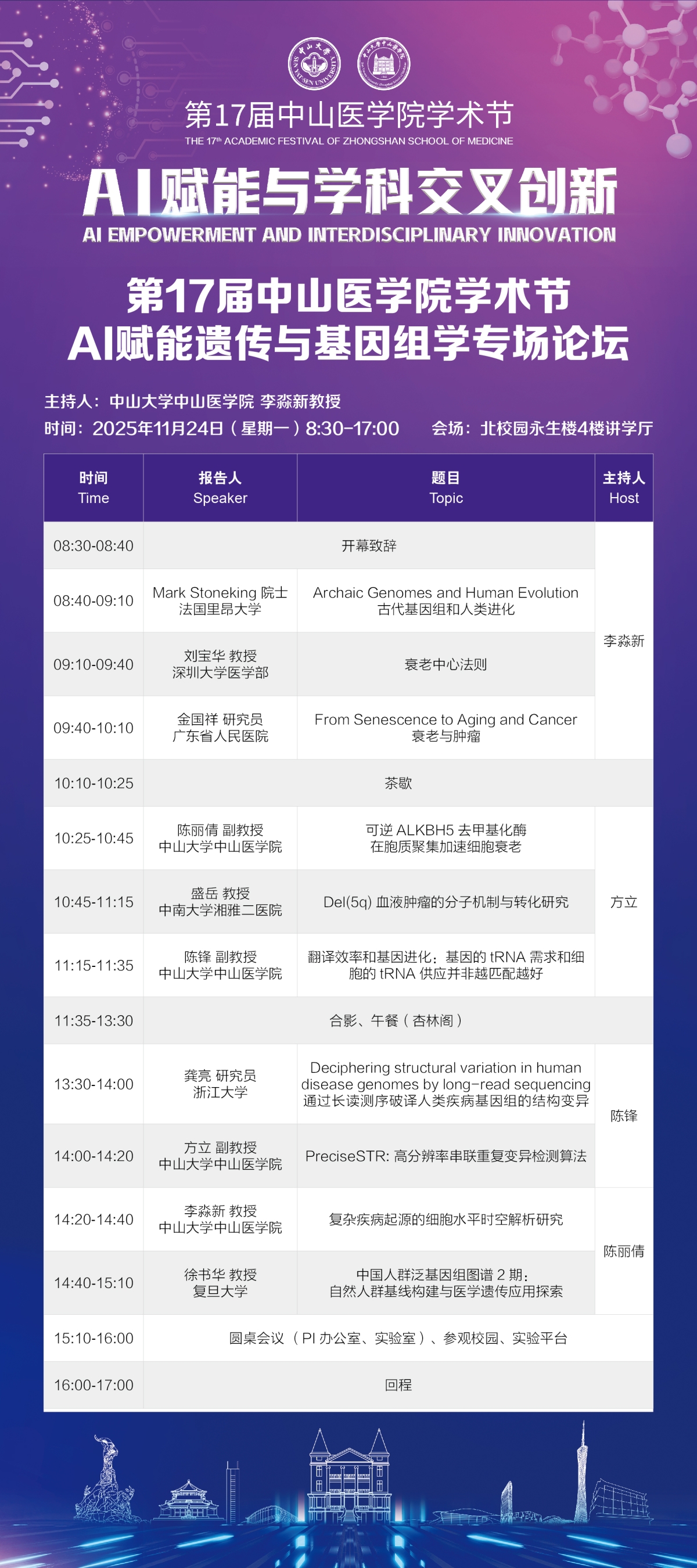 导航痕迹 首页 科学研究 学术讲座 第17届中山医学院学术节:AI赋能与学科交叉创新 科学研究 科研通知 学术讲座 科研平台 办理指引 第17届中山医学院学术节:AI赋能与学科交叉创新 发布人:张玉琦 发布日期:2025-11-20