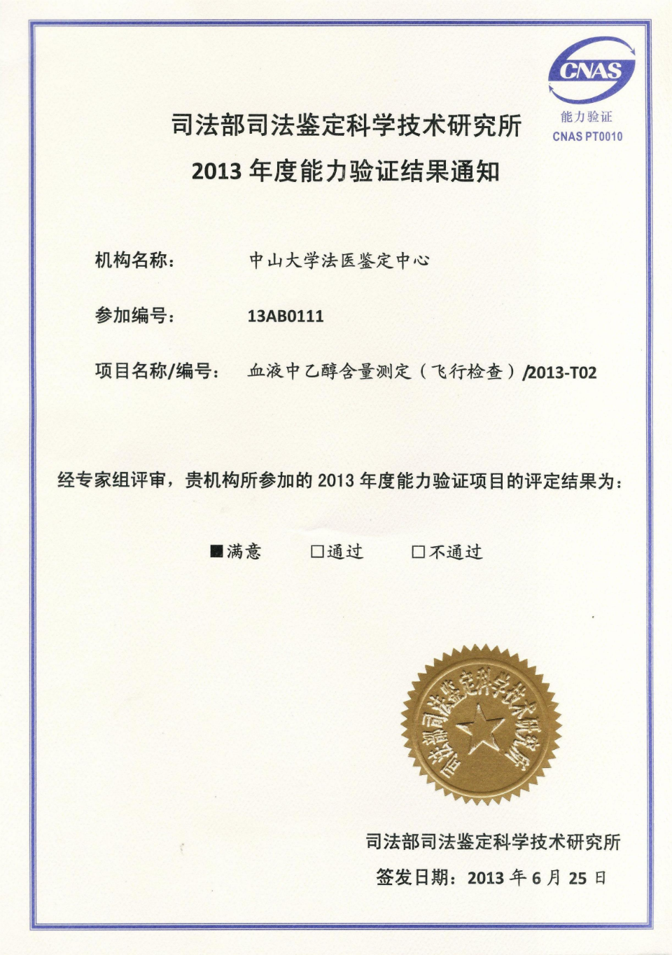 2013年度能力验证结果