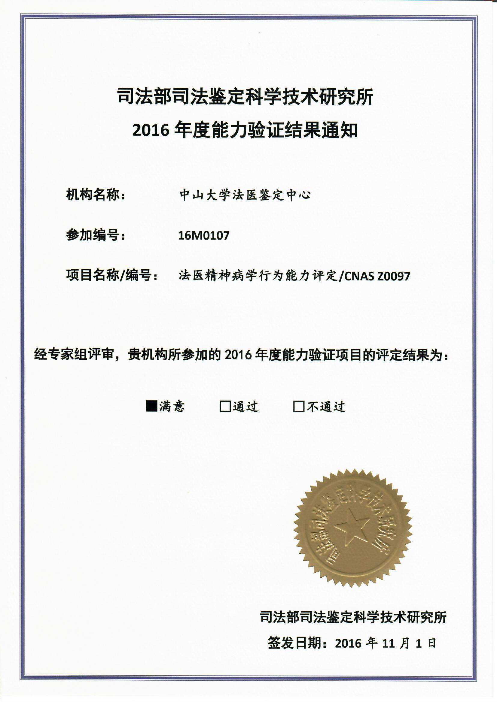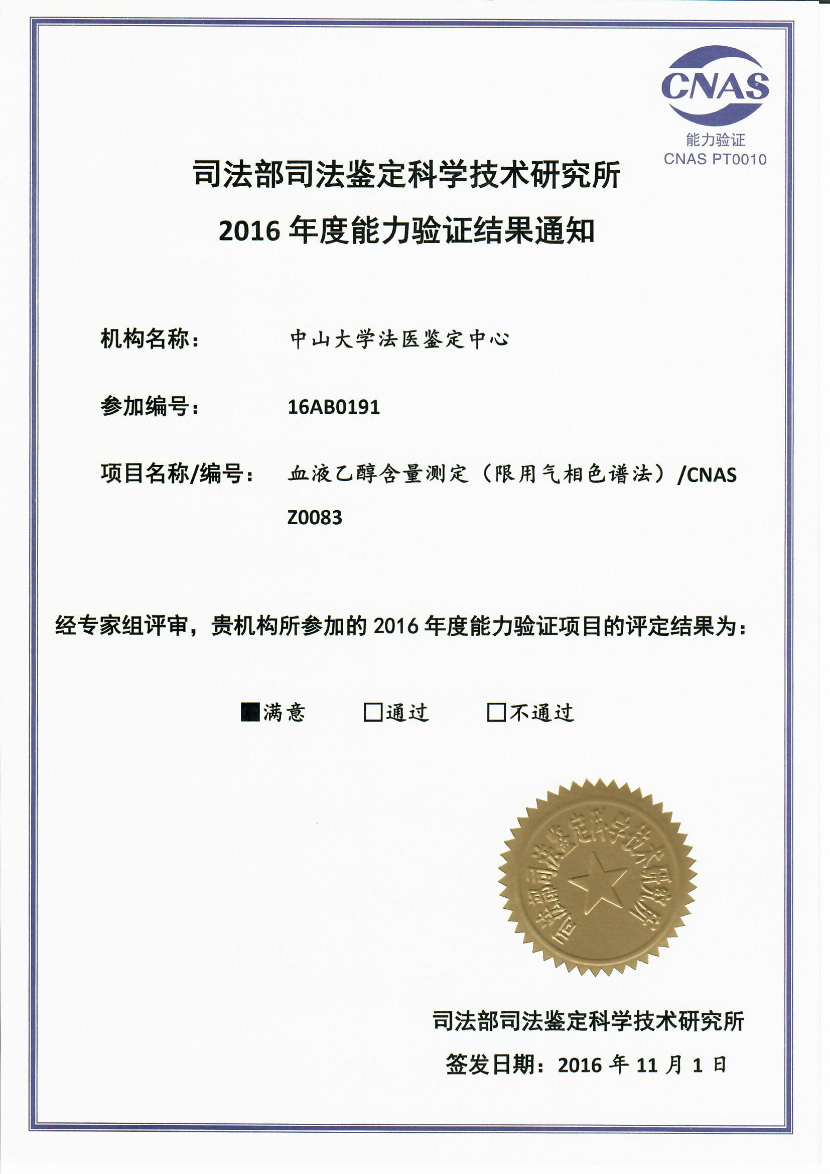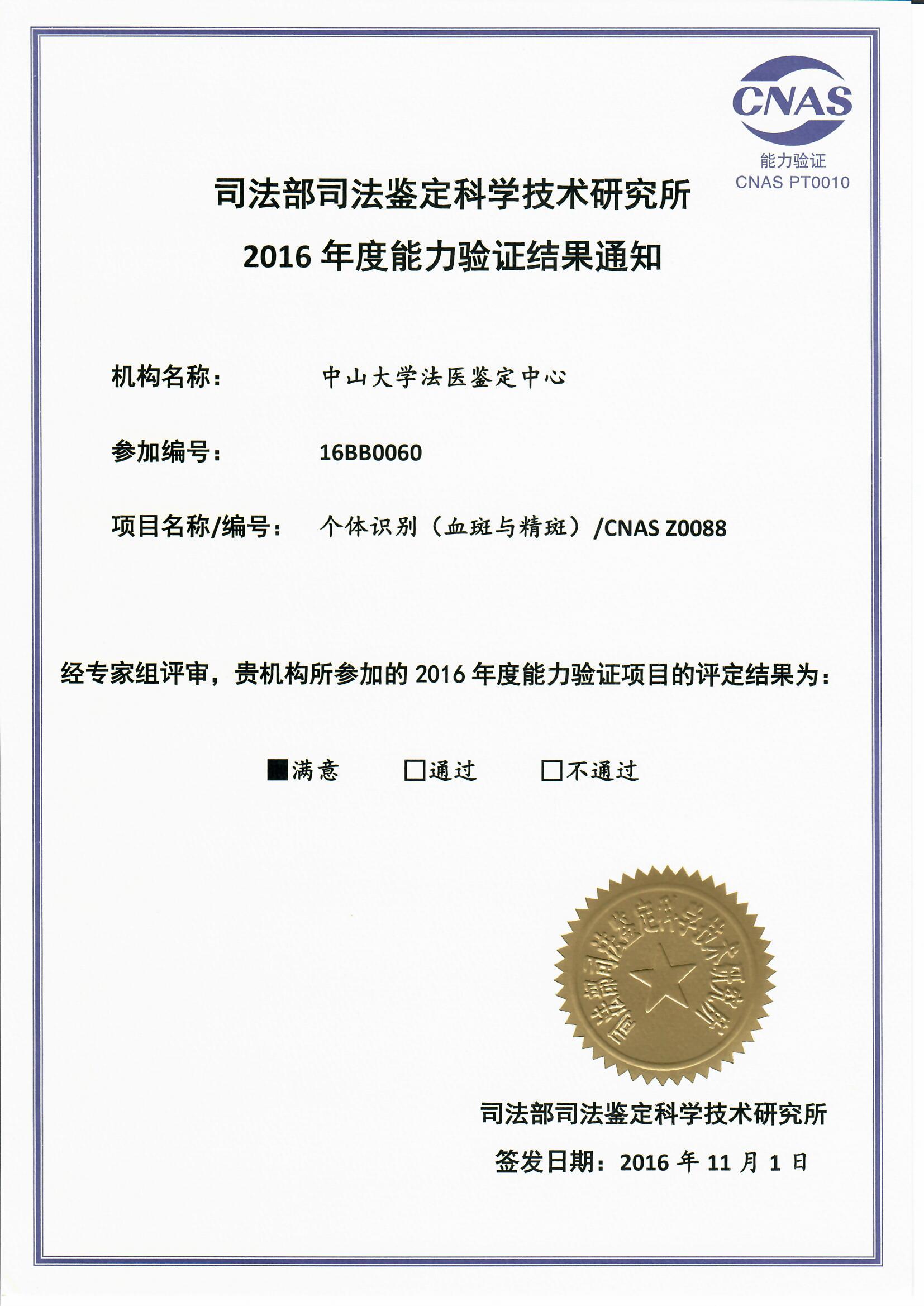 2016年度能力验证结果
