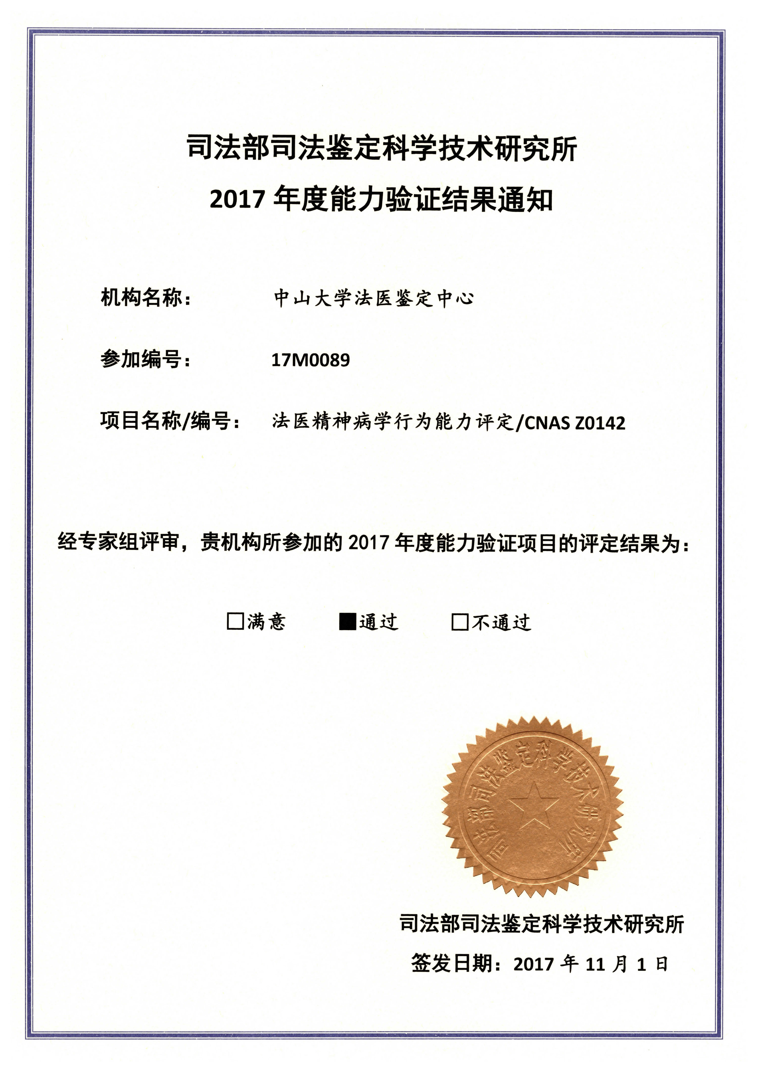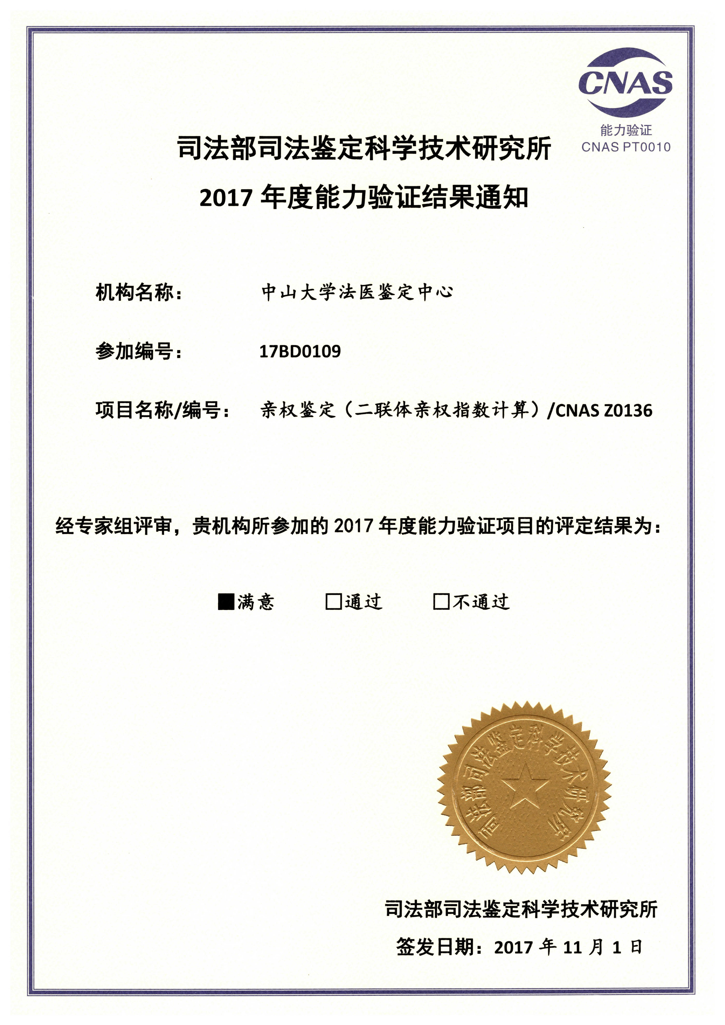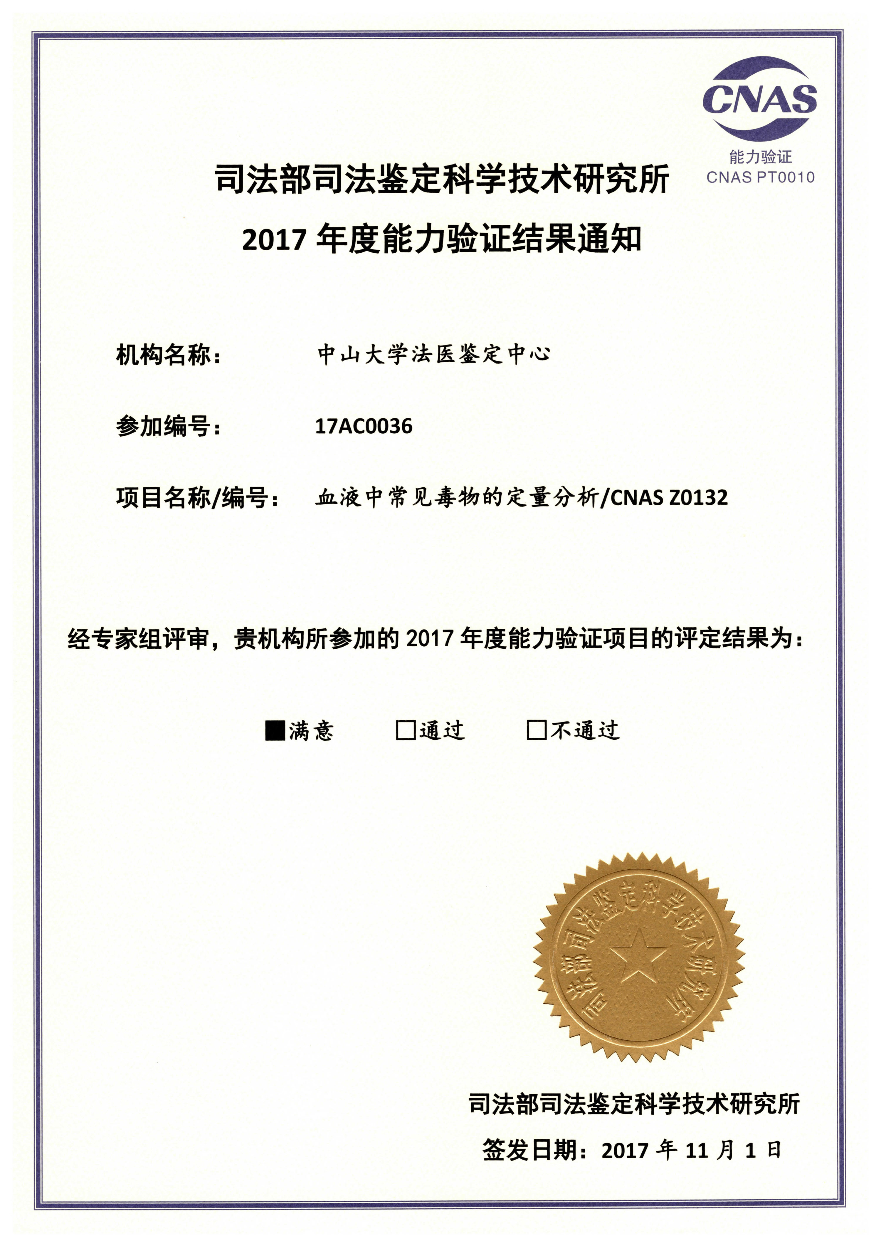 2017年度能力验证结果