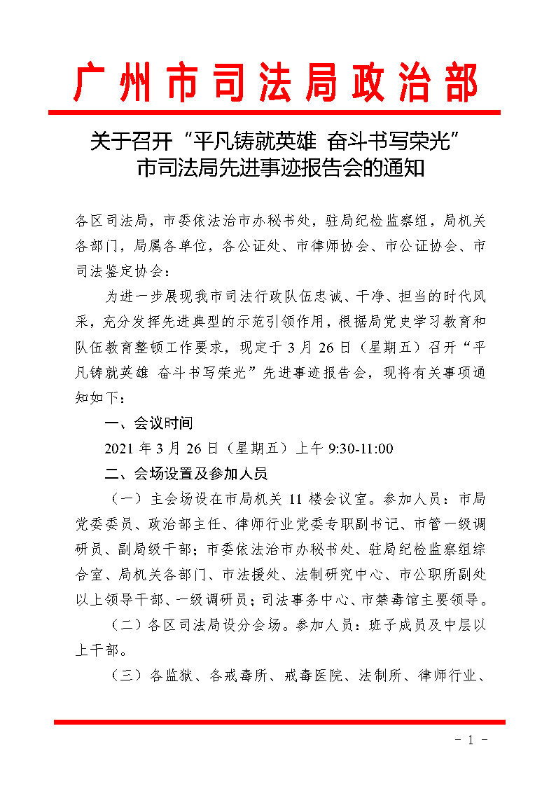 关于召开“平凡铸就英雄 奋斗书写荣光”市司法局先进事迹报告会的通知